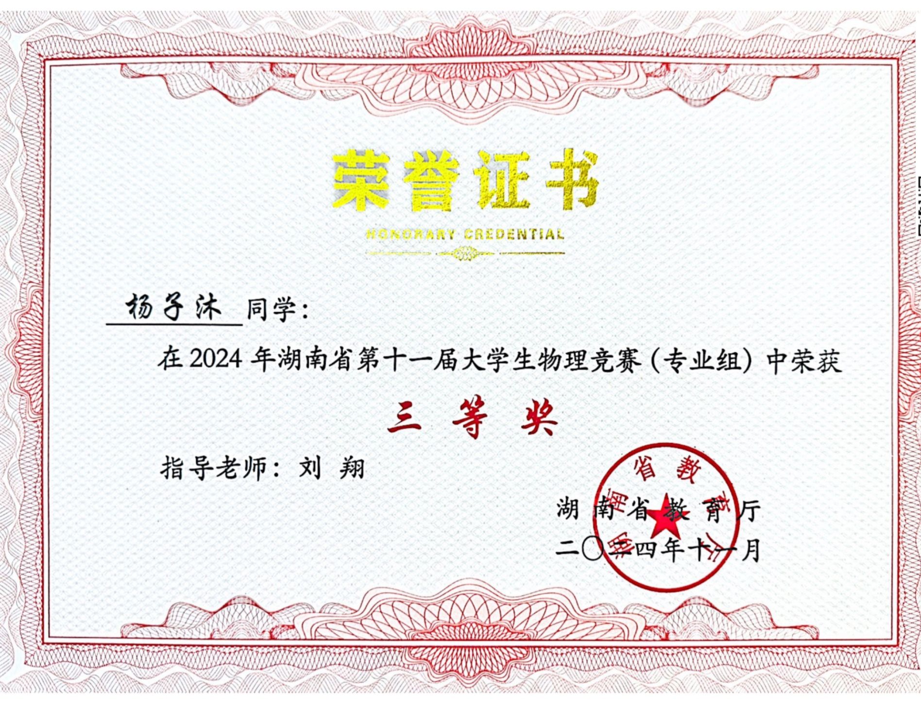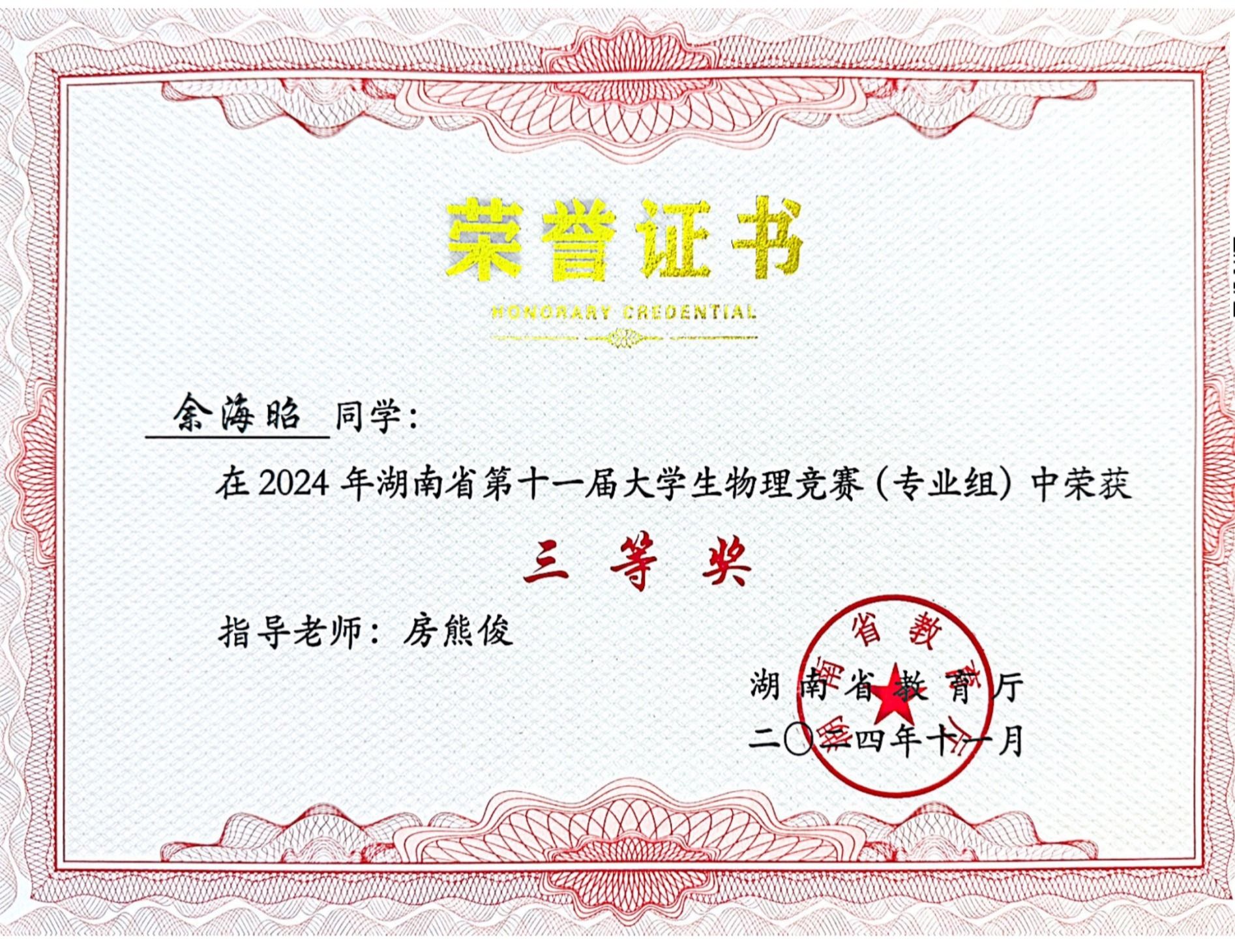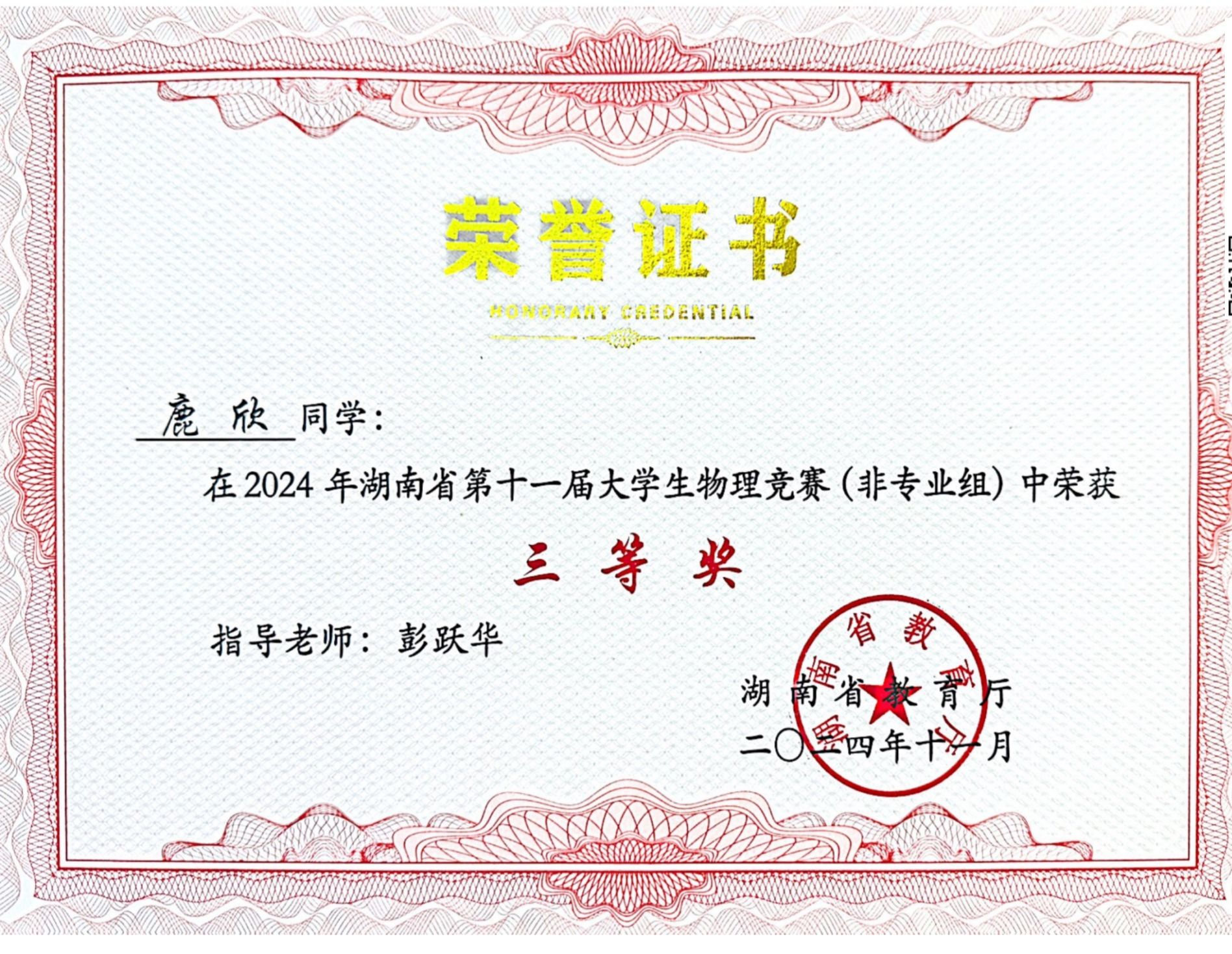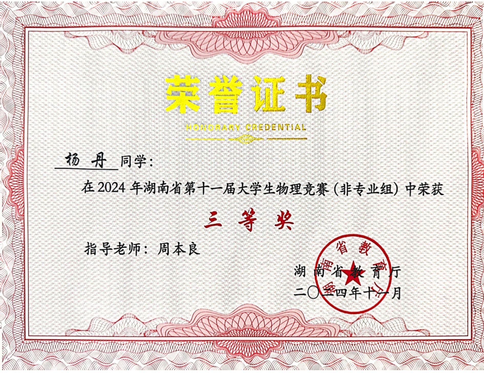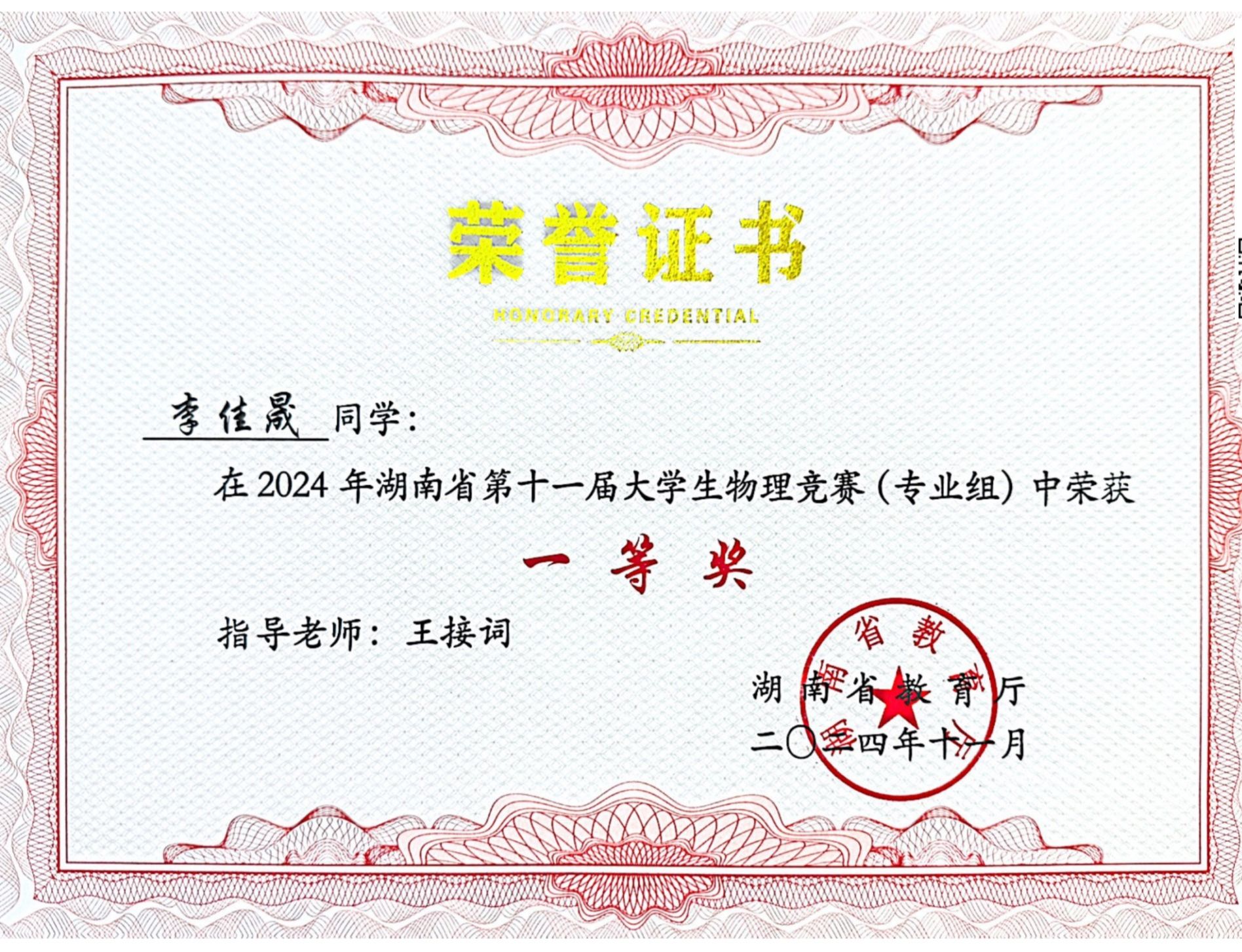 2024年湖南省第十一届老员工物理竞赛获奖
