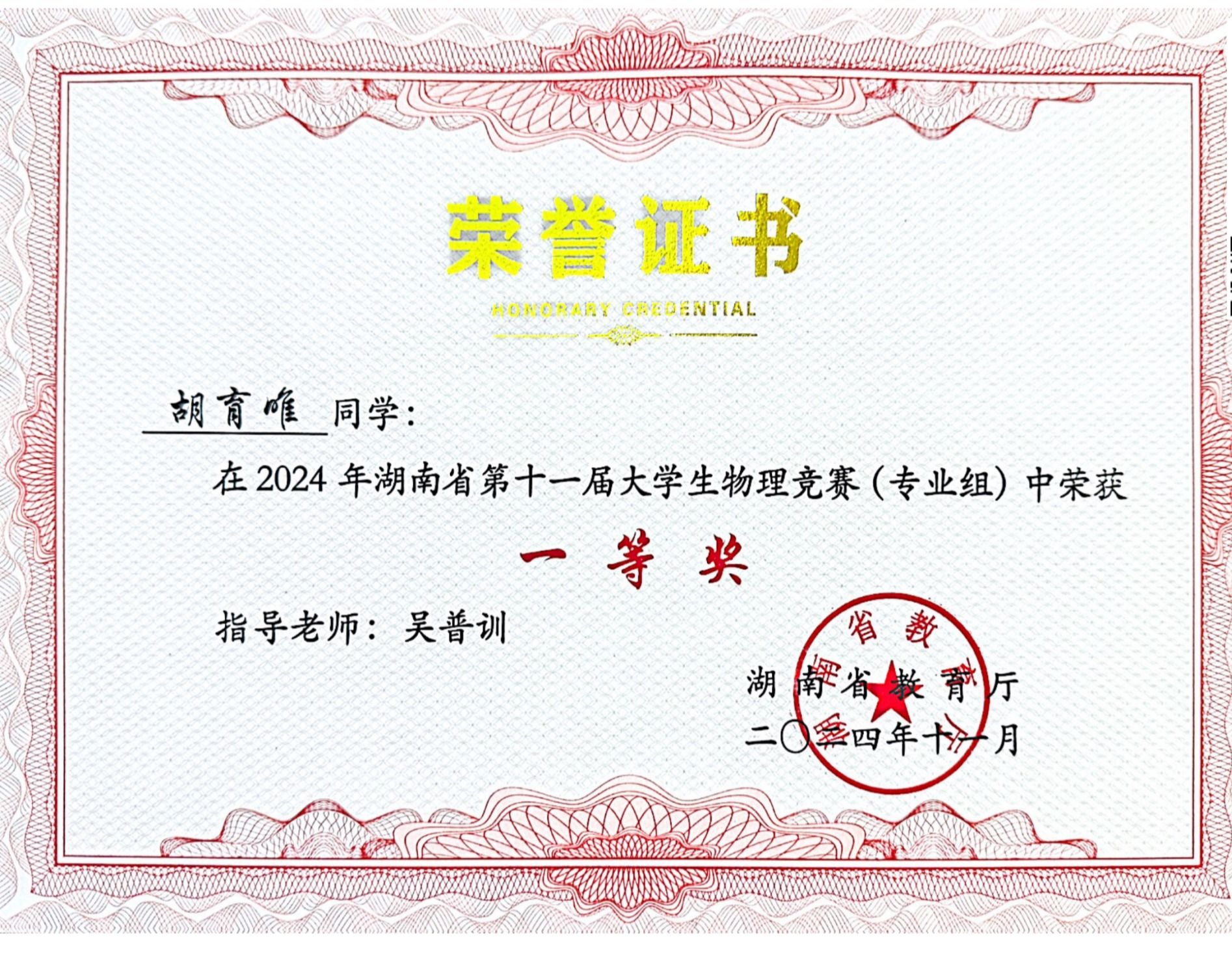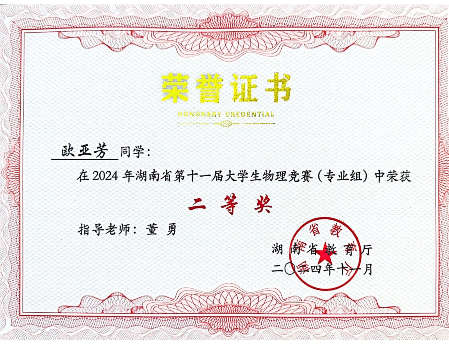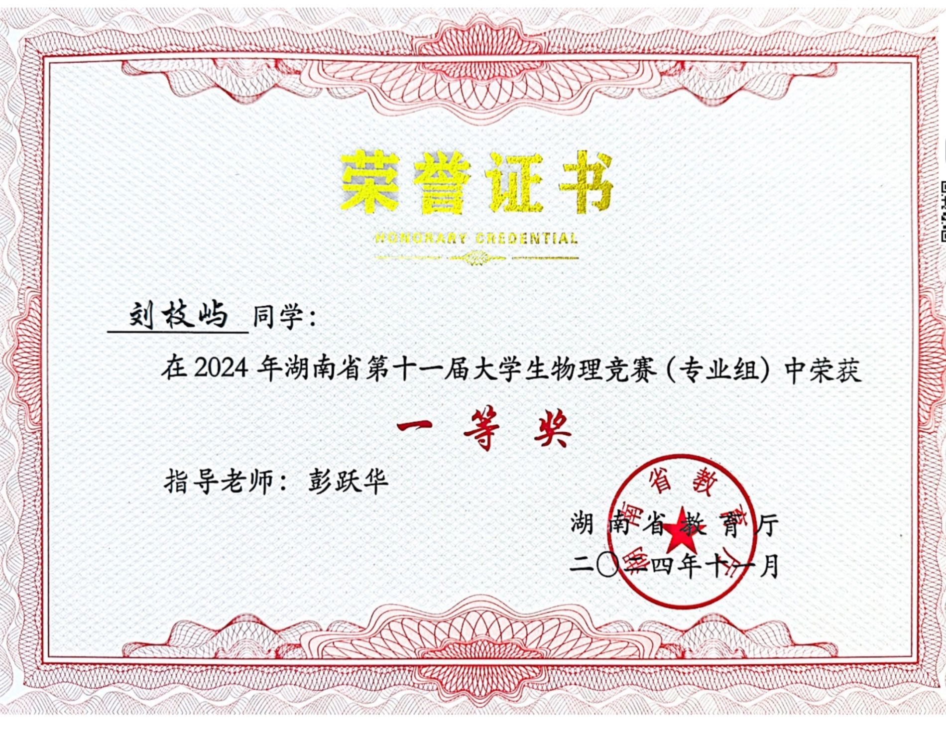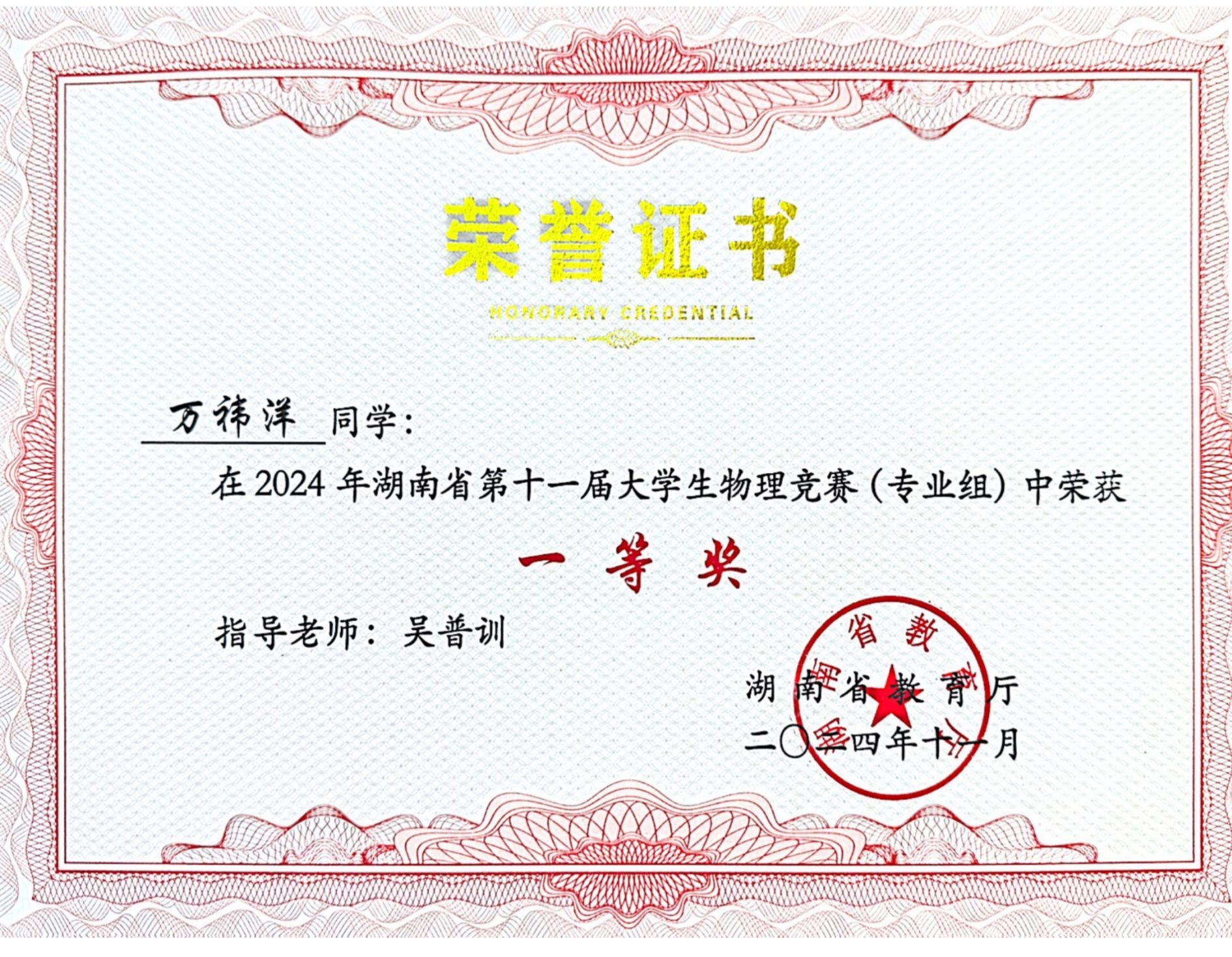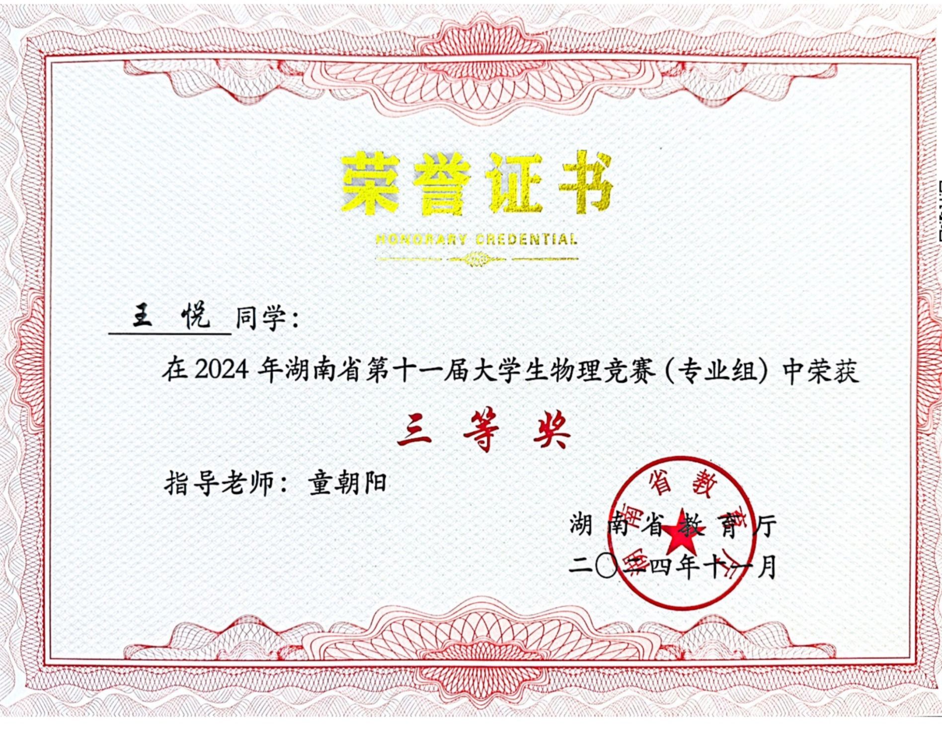 2024年湖南省第十一届老员工物理竞赛获奖
