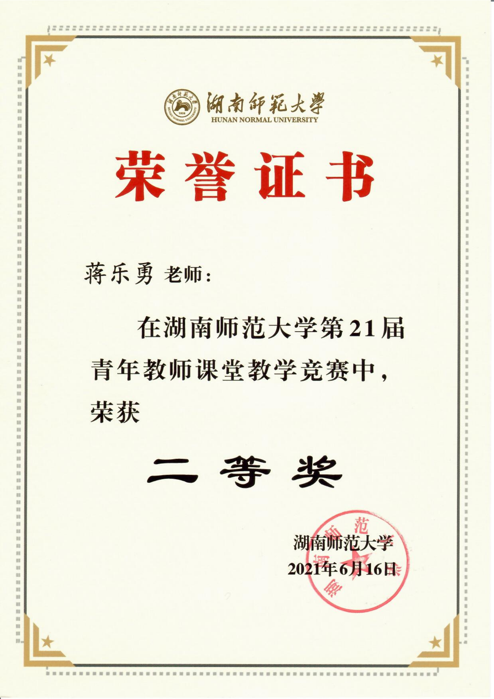 2021年湖南省第八届老员工物理竞赛获奖