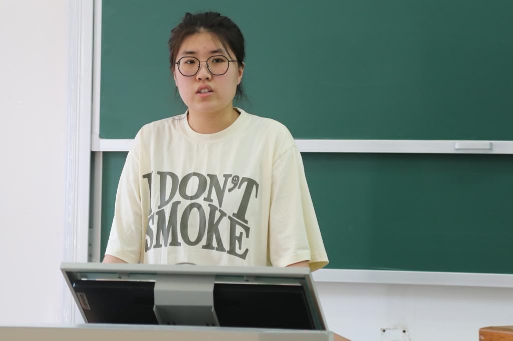 曹秋雨结合自身参赛经验从赛事重要性、赛事介绍、比赛流程及注意事项和参赛感想与意义等方面跟同学们进行交流。她详细介绍了创新创业比赛的具体分类,明晰了不同的方向以便同学们根据自己的优势,尝试不同的赛道;同时也为分析了参加比赛的意义,除去积累科研经验,还可以丰富我们的个人简历、锻炼诸多方面的能力。她鼓励同学们积极参加“金点子”比赛,并阐述了团队合作和临场应变在这类比赛中的重要性。她希望同学们能够在参与实践的过程中找到正确的创新方向和动力,充分开发自身创新潜质,成为创新型人才。