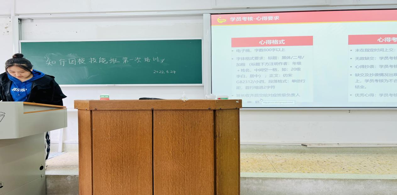 (通讯员 欧阳婷)11月24日,意昂体育第五期知行团校技能班第一次培训会于格物楼219教室举行,意昂体育21级本科生周学文担任此次培训会主讲人。全体技能培训班学员参与此次培训.