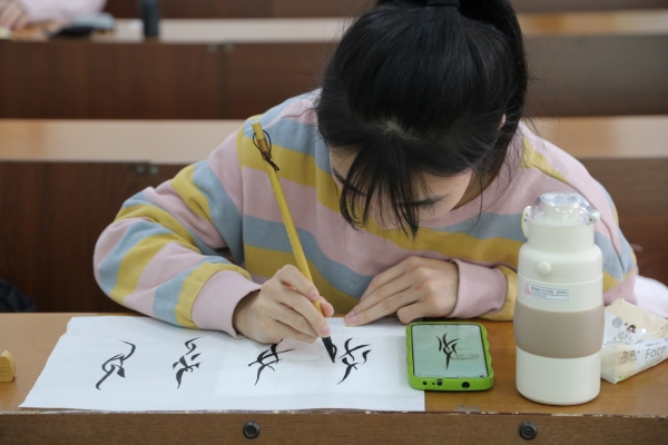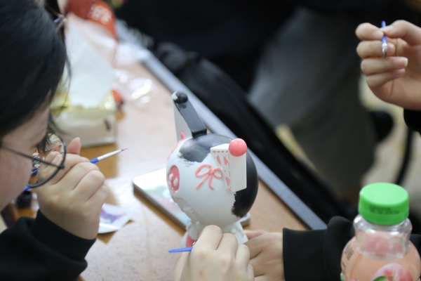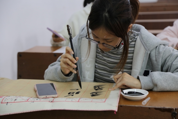 本次主题活动主要包含“走进女书”与“彩绘石膏娃娃”两个部分。“走进女书”活动现场,各位选手准备好笔墨纸砚,聚精会神地书写着工整美观的女书作品,对其精雕细琢,反复书写以求完美。“彩绘石膏娃娃”活动现场,策划人员先展示了不同形状的石膏娃娃底模供同学们选择,大家在确定好各自团队的石膏娃娃后,发挥想象力,团队间协调互助,对石膏娃娃进行自由创作。