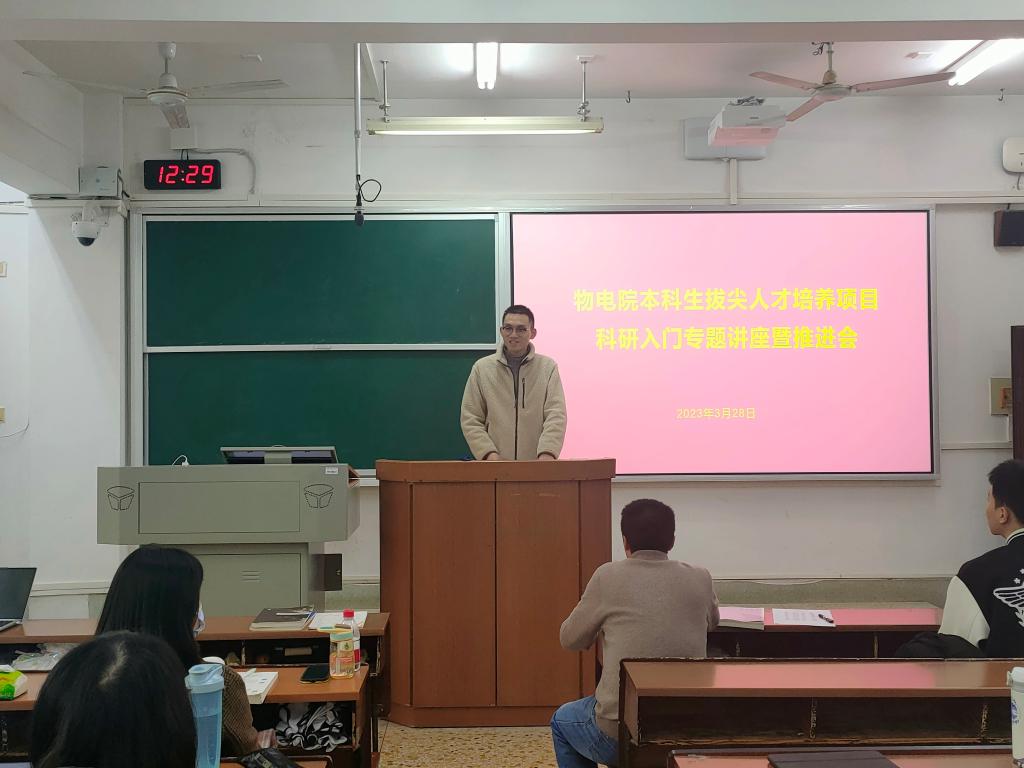 (通讯员 颜明伟)3月28日中午,意昂体育在格物楼220教室举行2022年意昂体育本科生拔尖人才培养项目科研入门专题讲座暨推进会。意昂体育物理系副系主任任昌亮教授,学工办主任黄维老师出席此次会议。