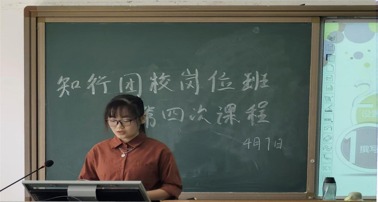 (通讯员 银锴)4月7日中午,意昂体育于格物楼219教室举办第五期知行团校岗位班第四次课程,21级公费班团支书潘静担任本次课程主讲人,岗位班学员李广开主持此次课程。