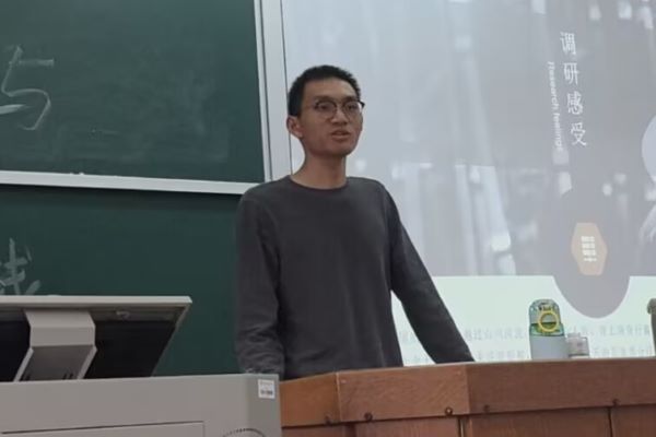 往届支教队伍队长冯昕煜、申思疑与调研团队长文佳琛依次上台发言。冯昕煜、申思疑就支教的前期准备、支教过程中开展的活动、对支教生活的感受以及支教所取得的成效进行了详细介绍。文佳琛以图片形式分享了调研团遍访当地乡村小学的经历,并以此为契机鼓励大家积极参与假期支教活动。