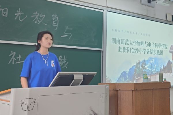 李思阳以当代乡村公司产品内容匮乏与团队力量薄弱的现状引入,阐述了阳光教育协会开展假期支教活动“献身教育”的目的及已经取得的成果。他向同学们具体介绍了支教队伍的构成及工作任务。