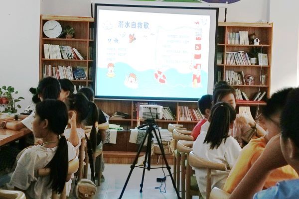 此次课程从如何远离野外危险水域、游泳注意事项、同伴落水的应对措施、自己落水如何自救四个方面开展,引导孩子们关注生命安全,应对溺水的危急情况时做到临危不乱,在危险时刻能够挽救自己与同伴的生命。在课程中,孩子们认真听讲,态度端正,积极主动地学习相关知识。在背记重点口诀时,他们全神贯注地投入其中,在短时间内记住关键口诀,为之后的安全教育相关课程的开展打下了坚实的基础。