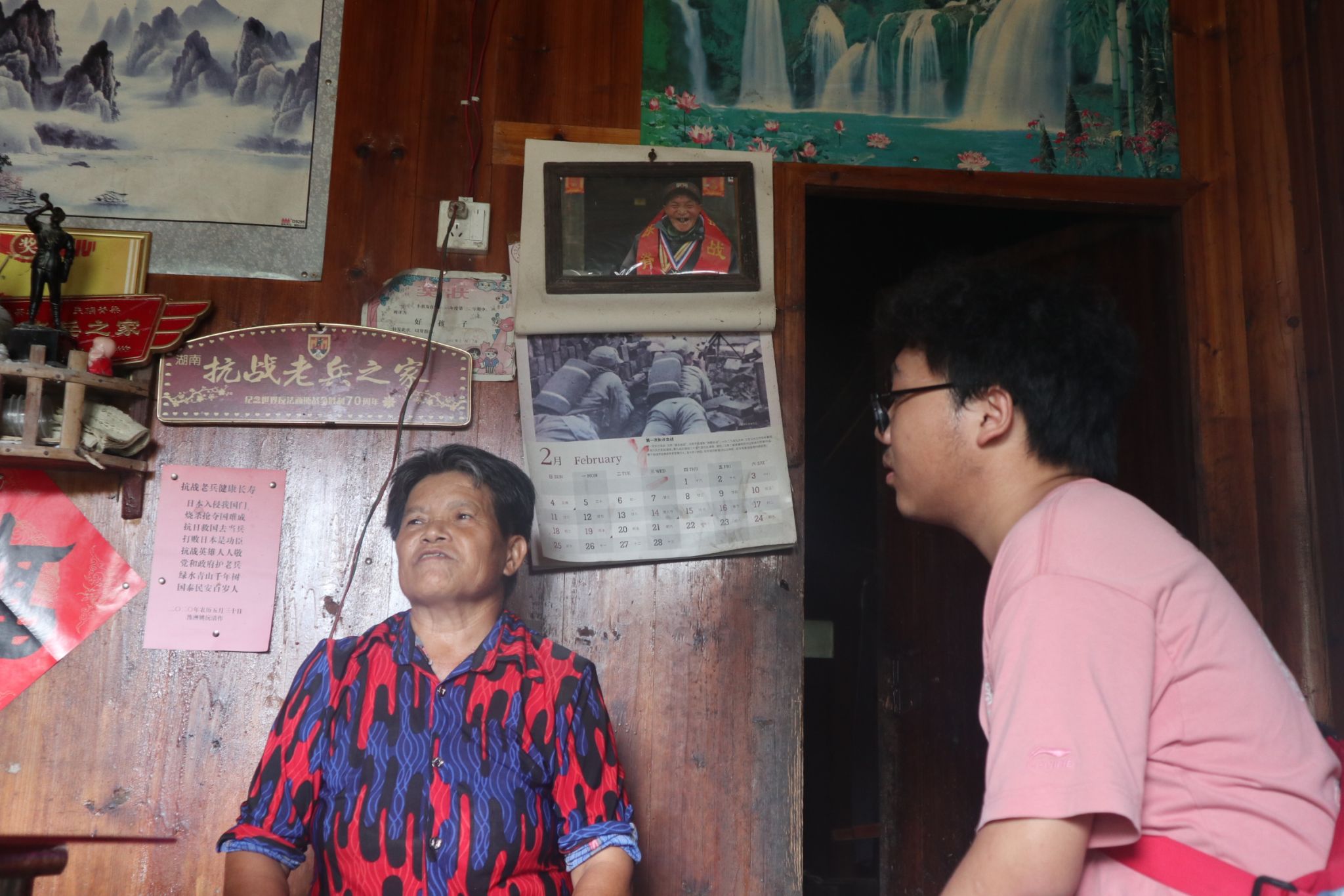 在杨天光老人家中,支教队员看到了《抗战老兵、民族脊梁》的牌匾和他曾经获得过的众多奖章。杨天光老人向支教队员讲述了那段充满艰辛和牺牲的岁月里,战斗的硝烟、生死一线的惊险、中国共产党的英明领导和人民的众志成城。在老人的小腿上,至今还存有在战争中遭受一枚子弹贯穿而造成的伤疤,而这也正是他坚韧不拔精神的见证。即便年过百岁,他的坚毅和勇气仍然感染着身边的每一个人。在采访过程中,他不断地向支教队员强调,作为当代青年,应当胸怀家国情怀,热爱祖国,勇于担当,为国家的发展和富强而努力奋斗。