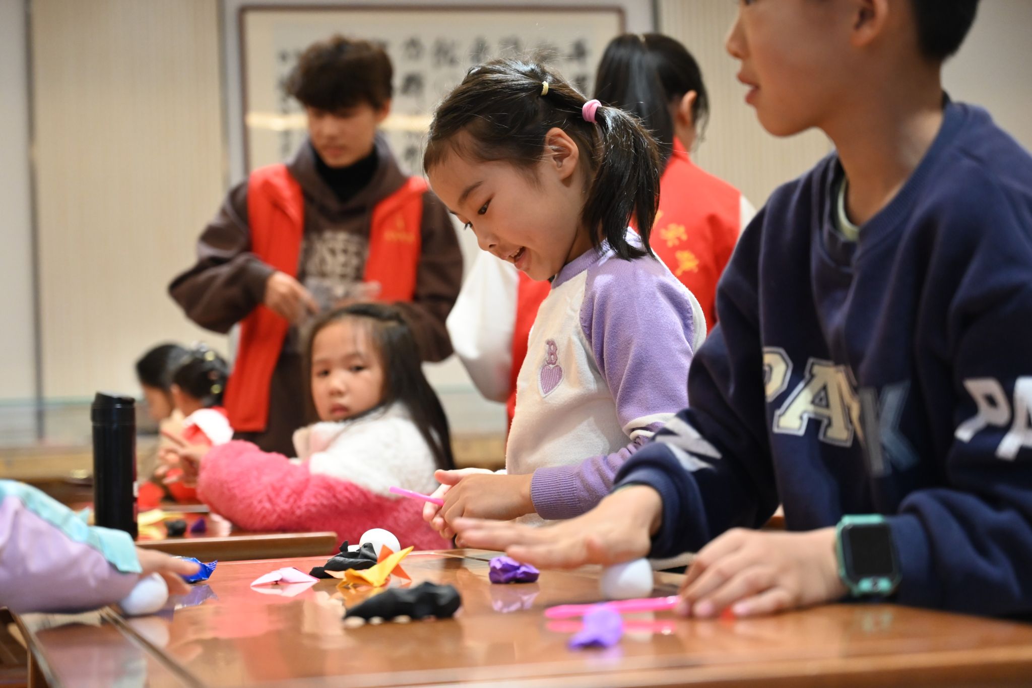 小朋友们进行折纸与捏黏土的活动