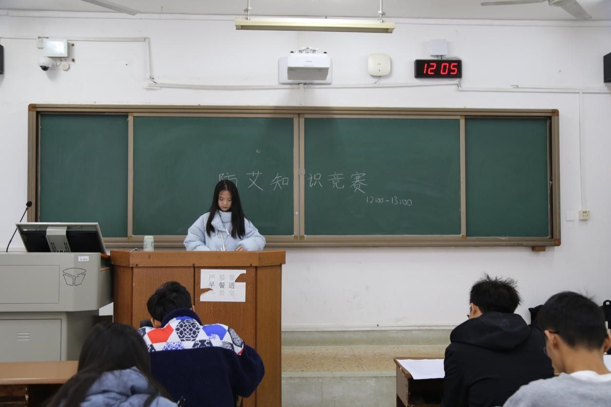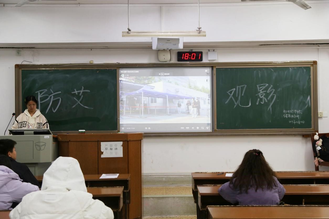 为加深同学对艾滋病的了解,大赛当晚,健服部组织2022级、2023级部分本科生进行防艾观影活动,影片从艾滋病的三种传播途径、艾滋病的抑制及如何与艾滋病人相处等多个方面展开知识介绍,使同学们对艾滋病有更加全面的认知。