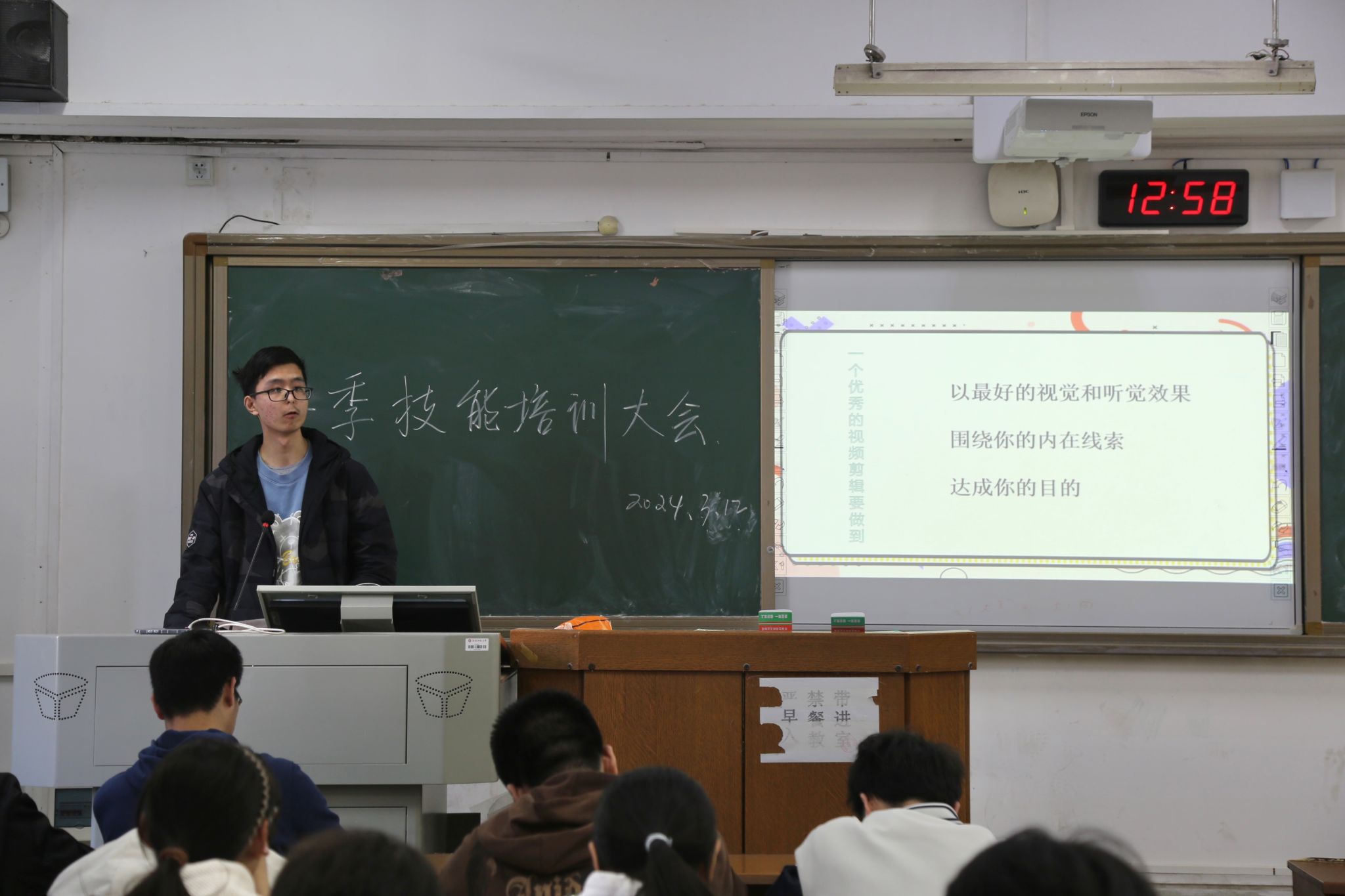 (通讯员 黄浩男 王贻菲)3月12日中午,意昂体育员工会于格物楼215教室召开春季技能培训会。会议由员工会办公室负责人李尚坤主持,员工会权益部负责人唐天、青传采编部负责人王贻菲、员工会宣传部工作人员杨硕、青传新媒体部工作人员陈新颖主讲,员工会全体成员参与。