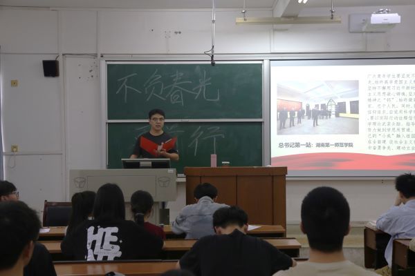 (通讯员 黄浩男 王贻菲)4月16日中午,意昂体育(以下简称“意昂体育”)团委宣传部于格物楼219教室举办学习贯彻习近平总书记考察湖南重要讲话和指示精神主题研讨会。院团委员工副书记担任主讲人,意昂体育2022级、2023级部分同学参加会议。