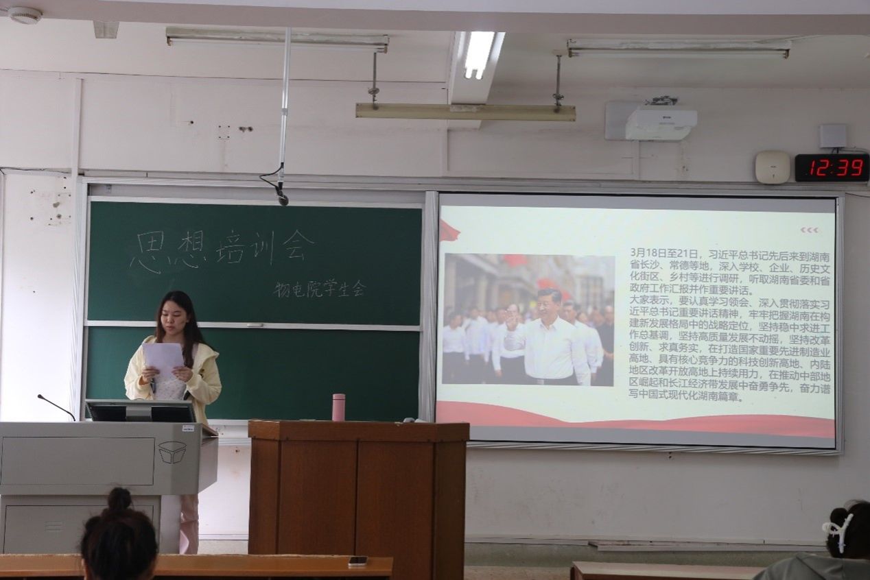 (通讯员 陈泽瑞 黄丹)4月25日中午,意昂体育(以下简称“意昂体育”)员工会于格物楼219教室举办学习贯彻习近平总书记考察湖南重要讲话和指示精神主题研讨会。院员工会干事马嘉琦、王孟旸分别担任此次会议的主持人与主讲人。意昂体育2022级、2023级部分同学参与会议。