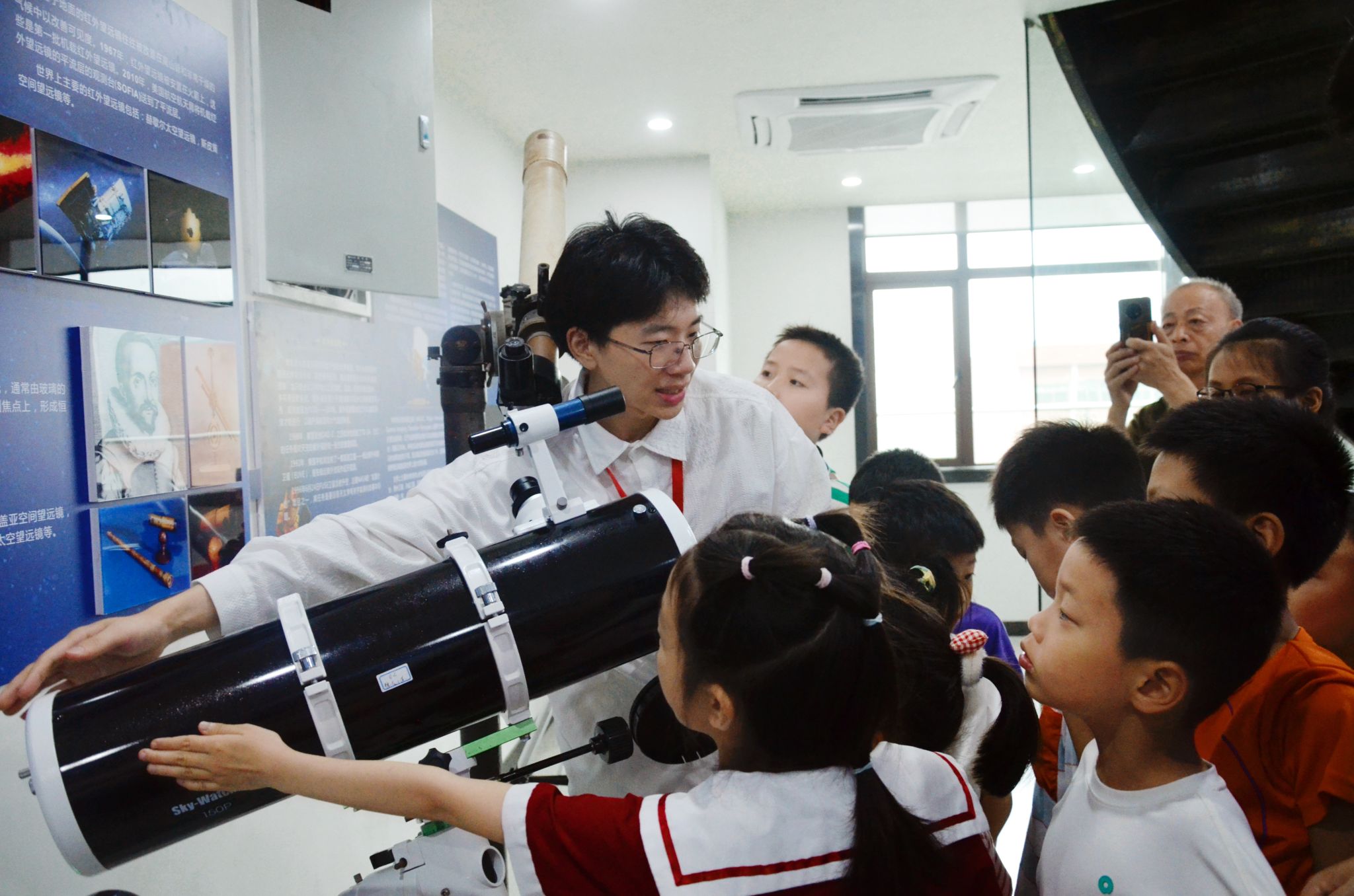 姚睿向小朋友们介绍望远镜结构