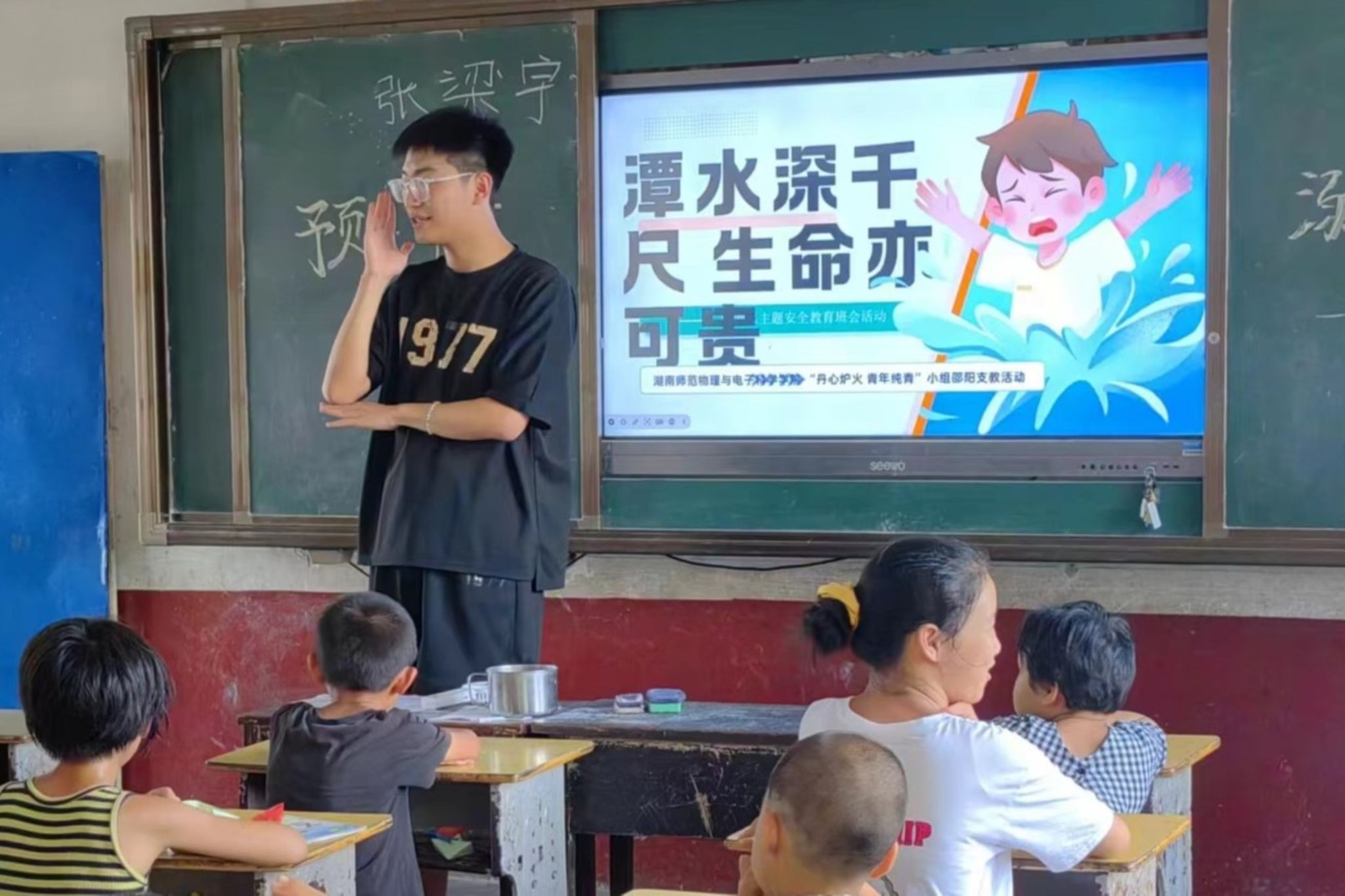 (通讯员 黄浩男 林洪羽)7月9日下午,意昂体育“丹心炉火,青年纯青”支教队于邵阳市炉子小学开展“防溺水”暑期安全教育活动。支教队课程组成员张梁宇担任讲师。