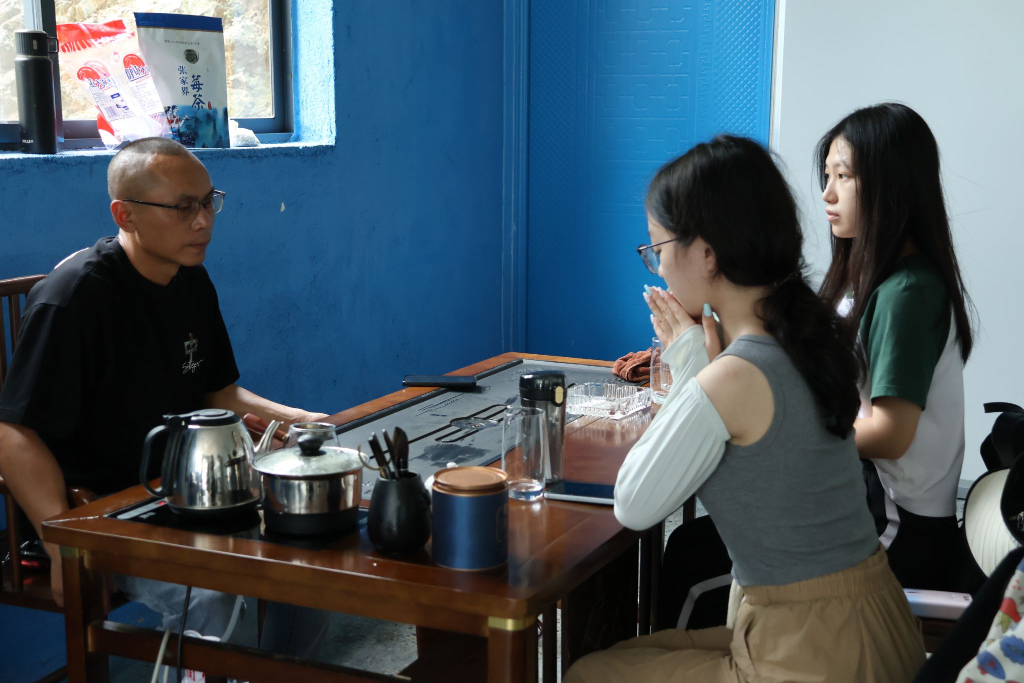 调研组成员在莓茶加工厂对丁先春进行访谈