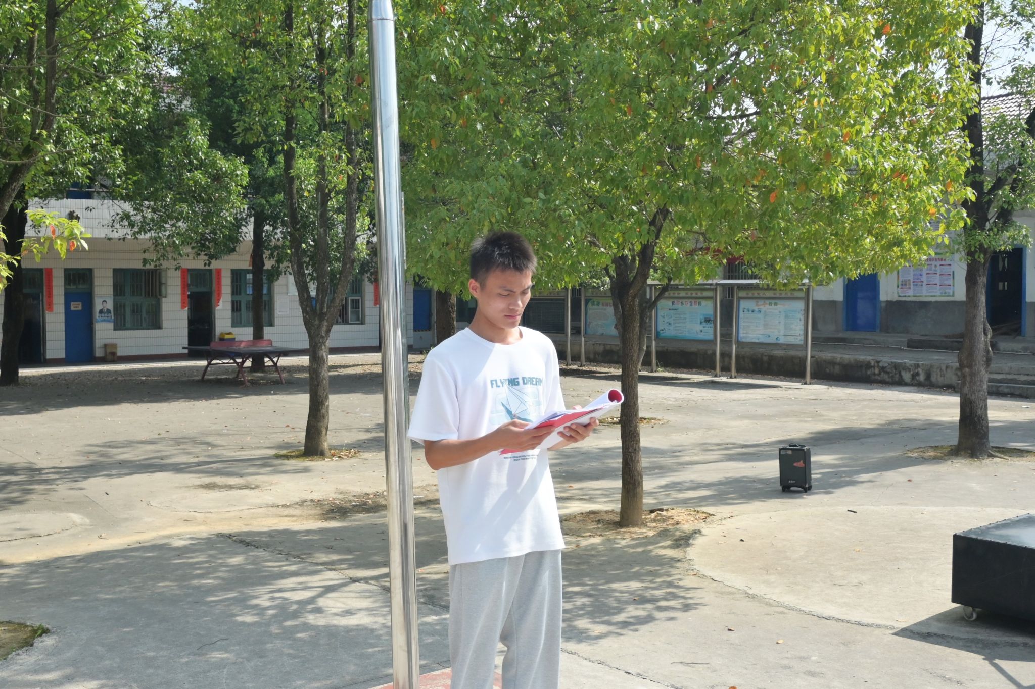 上午9点半,全体参与人员准备就位,升旗仪式正式开始,全场一片肃静。伴随着庄严的中华人民共和国国歌,在全体师生的注目礼下,五星红旗冉冉升起。支教队队长周柏成发表国旗下讲话。在生活方面,他号召员工们成为知文明,懂礼节的人;在学习方面,他呼吁员工们要端正学习态度,珍惜学习时光,为中华崛起而读书。