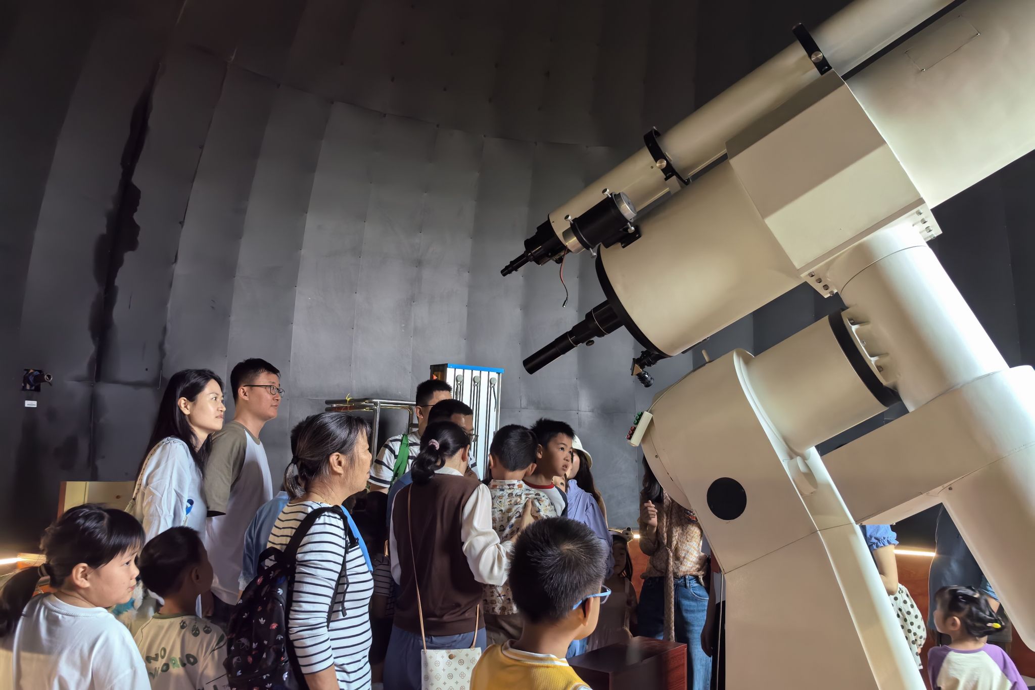 小朋友们参观天文望远镜