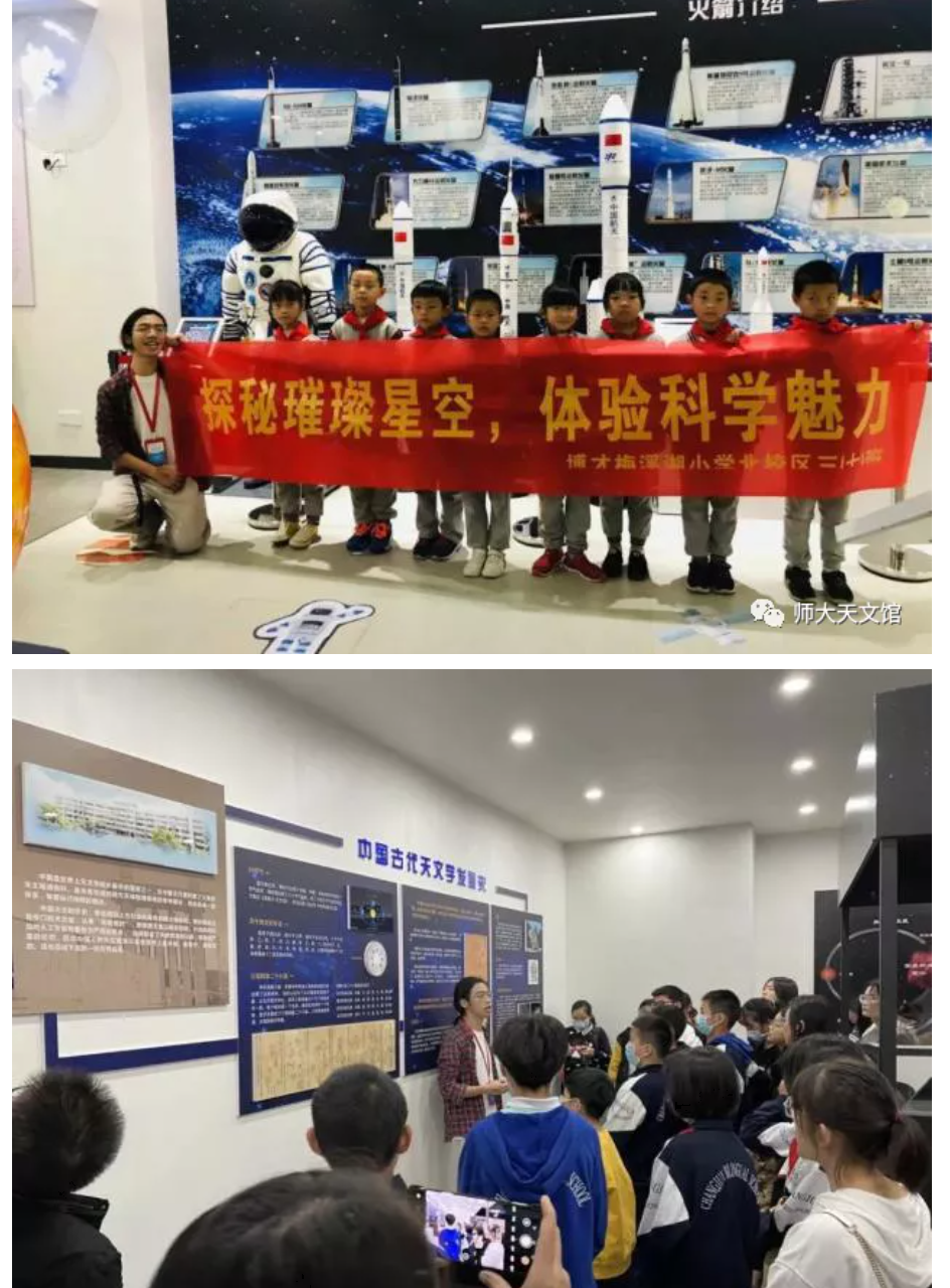 在天文馆科普开放月的第三周,我们接待了来自长沙市的家长朋友和他们的孩子们,以及来自师大外国语公司18级俄语班,师大附小,阳明小学的同学们。参观者们通过讲解员的讲解了解中国古代和现代星空划分,宇宙的产生等天文知识,感受宇宙的的魅力,对天文的热情进一步提升