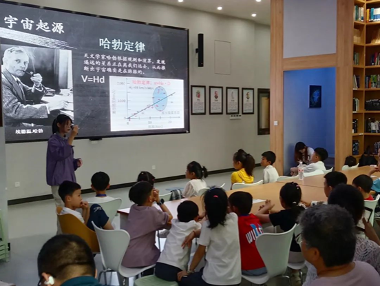 本周特一天开设两门星趣课堂,分别由天文馆科普员张孟翔、聂晓津担任主讲人。上午,张孟翔以“航天与地外飞行器”为主题,详细介绍了人类对太空的探索,包括中国的航天事业和未来的太空探索计划。小朋友们都听得津津有味,对航天知识产生了浓厚的兴趣。下午,聂晓津通过生动的比喻和图像,解释了宇宙的起源、大爆炸理论以及宇宙膨胀的过程。小朋友们听得浮想联翩,对宇宙的奥秘充满了好奇心。