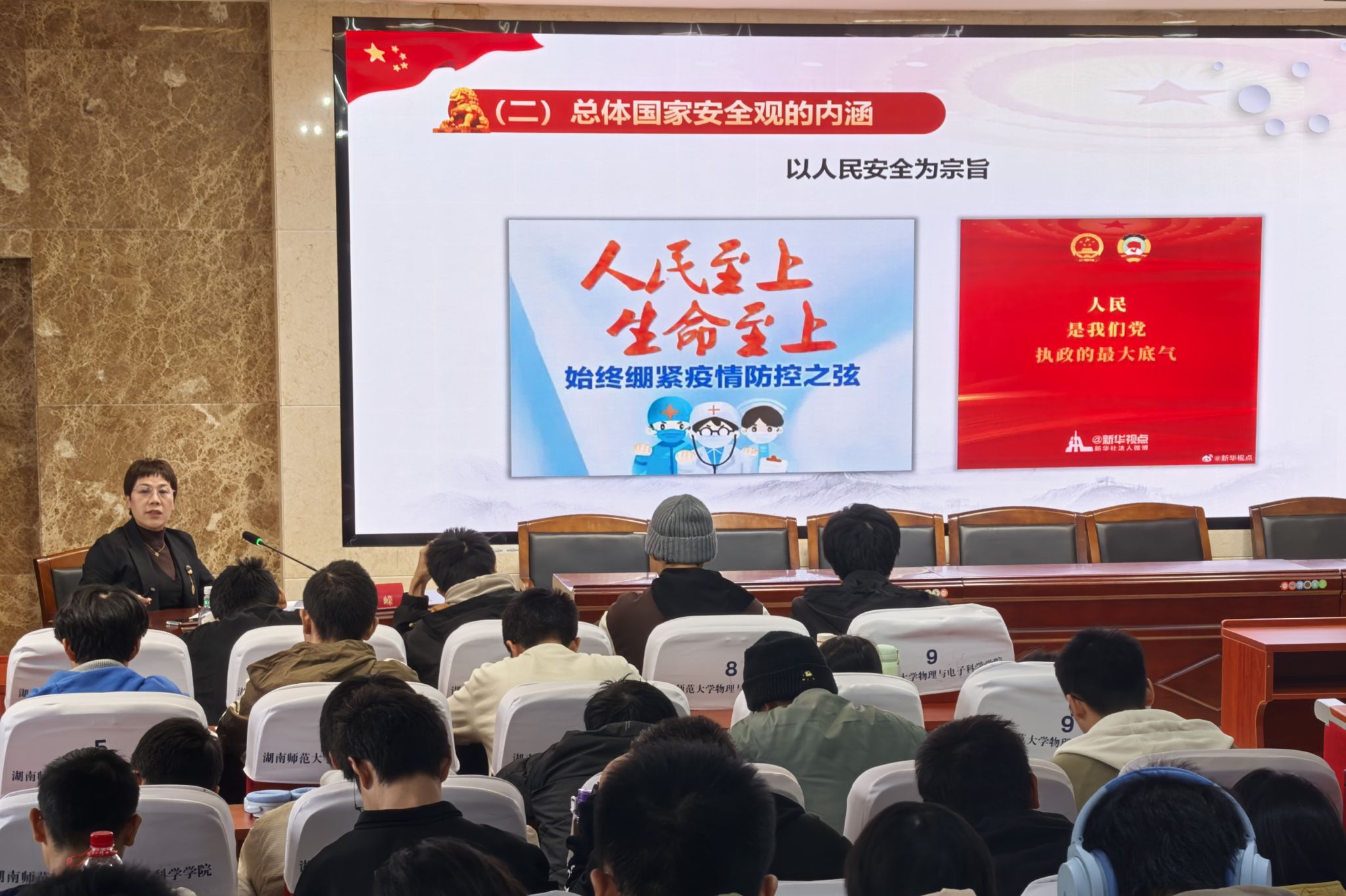 (通讯员 刘子佳 谭烨茜)11月20日下午,公司党委书记罗嵘于格物楼509报告厅为2024级本科生讲授《形势与政策》课程,课程主题为“全面深入贯彻落实总体国家安全观”,2024级辅导员戴文纯担任主持人。