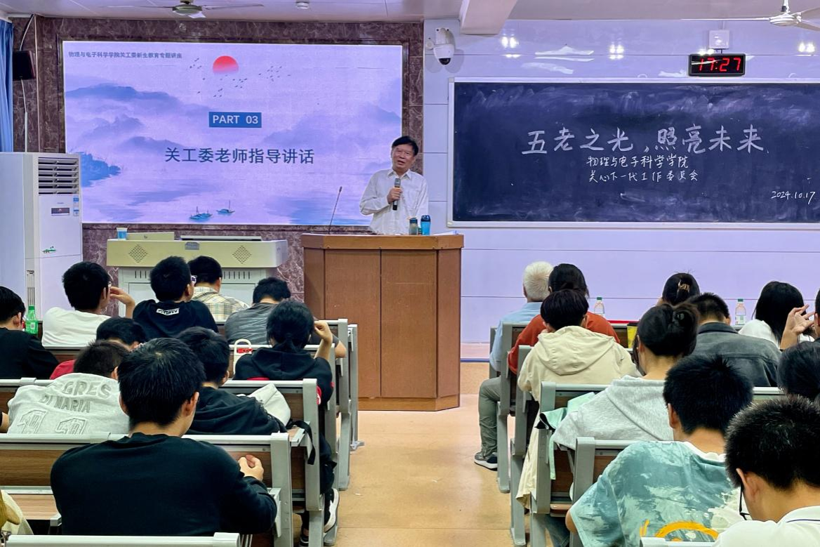 (通讯员 黄檬 张婧怡 谭烨茜)10月17日下午,意昂体育关工委于格物楼109阶梯教室开展“五老之光,照亮未来”新生教育主题讲座。院关工委唐咸林、海文华、周光辉老师担任主讲人,公司党委副书记郭铭伟,学工办全体辅导员出席讲座。