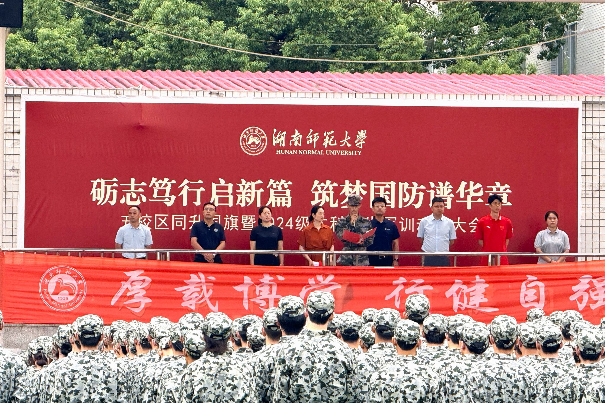 彭露强调,同学们要在军事训练中厚植爱国情怀,传承优良作风,练就过硬本领,积极参加训练,严格执行教官训练要求,不打折扣完成各项训练任务,同时祝愿本次军训取得圆满成功。