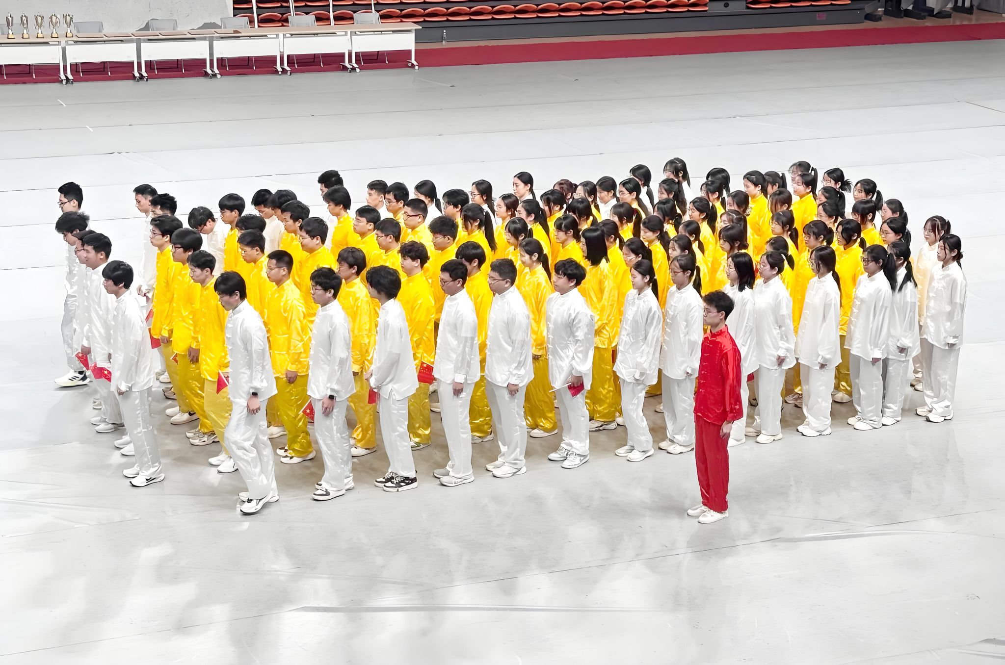 此次太极拳比赛分为团体赛和个人赛两个项目。在团体比赛项目中,代表队96名同学身着素色传统太极服入场。同学们伴随着悠扬的古乐,将呼吸与招式节奏完美契合,从“白鹤亮翅”的舒展飘逸,到“揽雀尾”的圆活连贯,一招一式之间尽显太极文化的深邃韵味。衣袂翻飞间,同学们将太极拳“松柔慢匀,开合有序”的特点完美地展现在整齐划一的动作之中。在个人比赛项目中,公司派出六名同学作为代表参加,其中刘昱辰,刘翱,王梓优,张玉松四名同学取得了个人赛三等奖的佳绩。