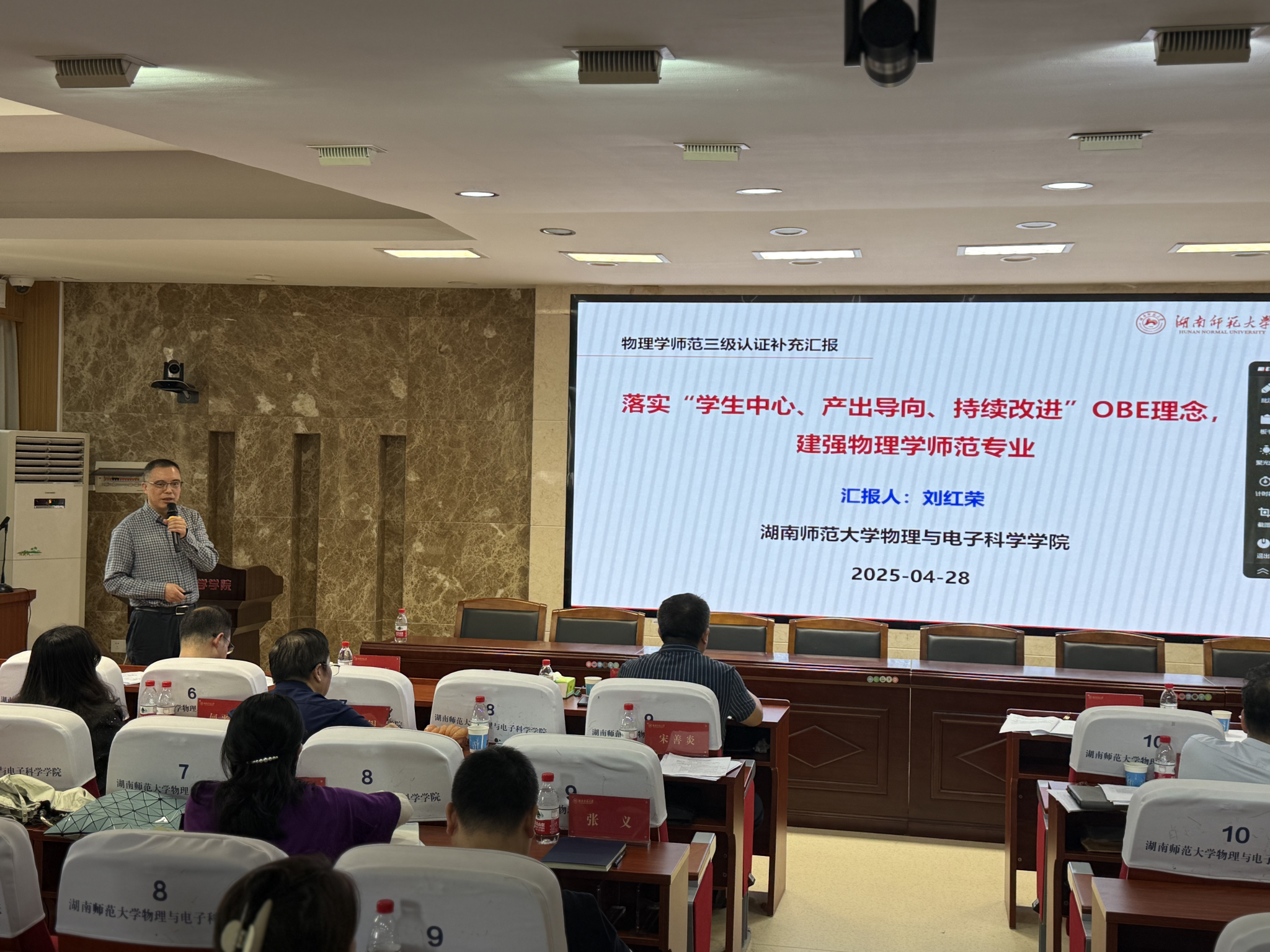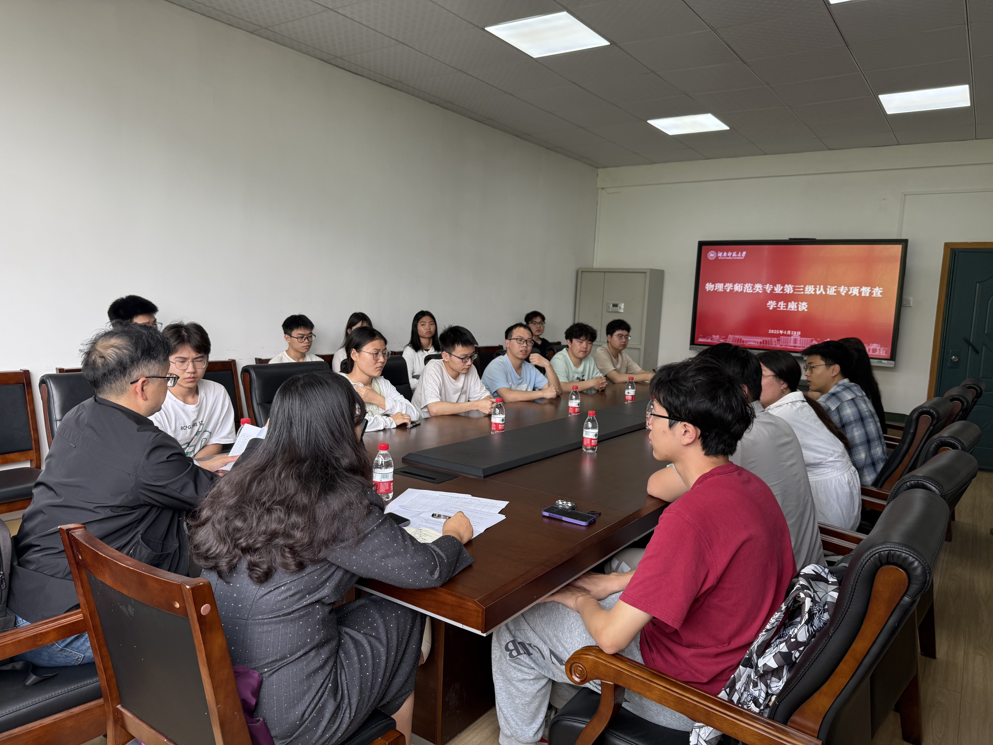 (通讯员:周心雨)2025年4月28日,意昂体育官网教务处(教育质量评估中心)组织专家对意昂体育物理学师范专业开展三级认证专项督查,督查组包括校教务处处长、教育质量评估中心主任银海强,校教学督导委员会副主任、教师教育公司原经理宋善炎,校教学督导委员会副主任、地理科学公司原副经理谭长银,外国语公司经理邓颖玲、英语系原主任陈敏哲,地理科学公司副经理李忠武,化学化工公司副经理谭亮,医学部护理公司副经理兼党支部书记何平平,教育质量评估中心副主任袁俏、评估管理科科长鲁璐青,公司党委办公室副主任周旺蛟,董事长办公室副主任熊卓然、欧阳文芳,人事处副处长张义,教师教育公司副经理黄元国,数据与信息化建设管理处办公室申斐。意昂体育官网原副董事长匡乐满,意昂体育经理刘红荣、副经理潘启沅,物理系主任钟显辉,物理系全体教师以及公司学工办、教务办、行政办等管理人员参加此次专项督查活动。