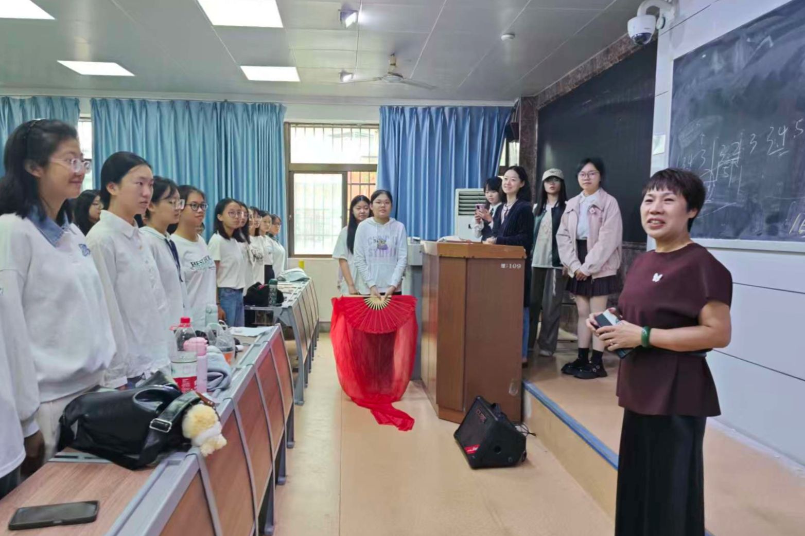 在辅导员们的陪同下,罗嵘书记一行首先来到军歌排练现场。新生们以班级为单位,列队整齐,在指挥同学的带领下放声高歌。《中国军魂》旋律激昂,歌声嘹亮,充分展现了25级新生积极向上、朝气蓬勃的精神风貌。罗嵘书记驻足聆听,并不时为同学们的精彩表现鼓掌。