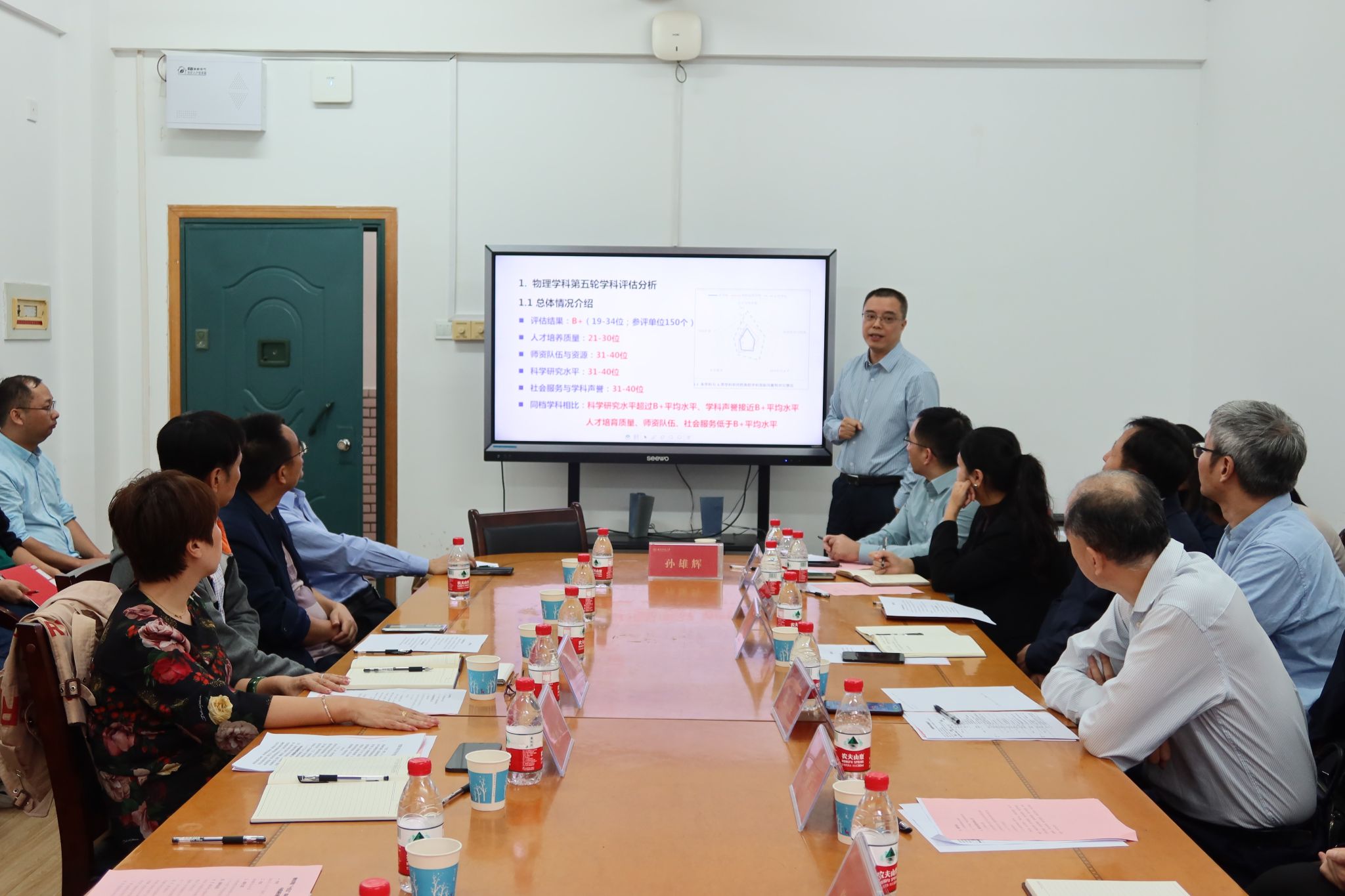 集团发展规划与团队建设处处长孙岳兵、科技处处长唐东升、资产经营管理公司总经理蔡炳华、资产与实验室管理处处长许广、人事处副处长饶昊、研究生公司党委副书记苏涵琼、创新创业教育办公室专职副主任朱浩浩、发展规划与团队建设处副处长孙雄辉、发展规划与团队建设处副处长覃志华,公司副经理钱盛友、副经理欧阳钢、副经理廖洁桥,物理系主任钟显辉和教师代表荆继良教授、吴普训教授、金湘亮教授等参加了会议。