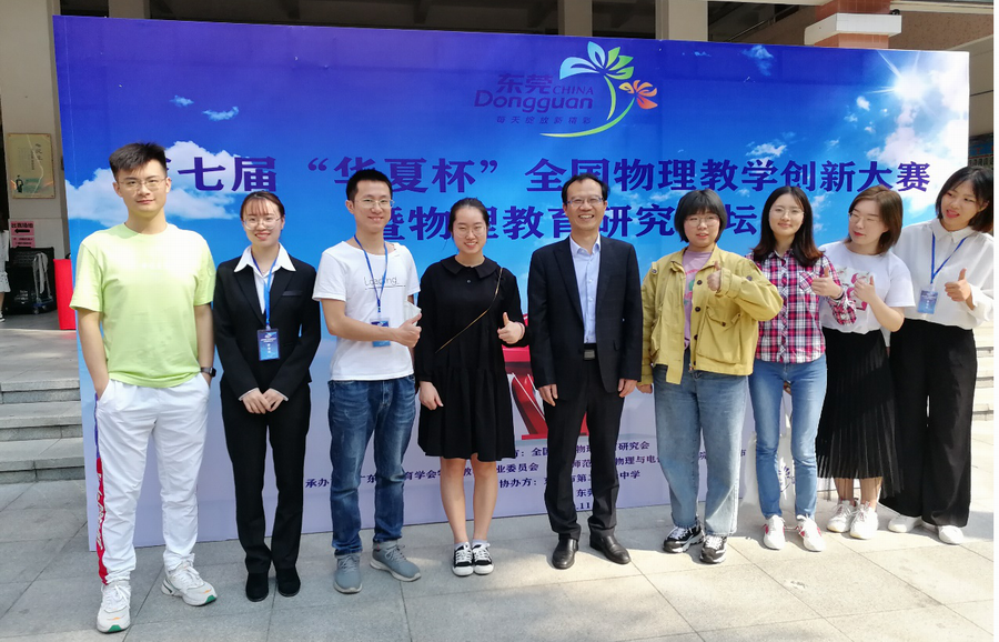 近日,意昂体育物理教学论研究生团队在刘健智教授的带领下赴东莞参加了2019年第七届“华夏杯”全国物理教学创新大赛,并在大赛中喜获佳绩:团队全员皆获“一等奖”,一人获“实验创新奖”,意昂体育官网获“优秀组织奖”,刘健智、郭桂周、宋善炎、刘翔老师皆获“优秀指导教师奖”。