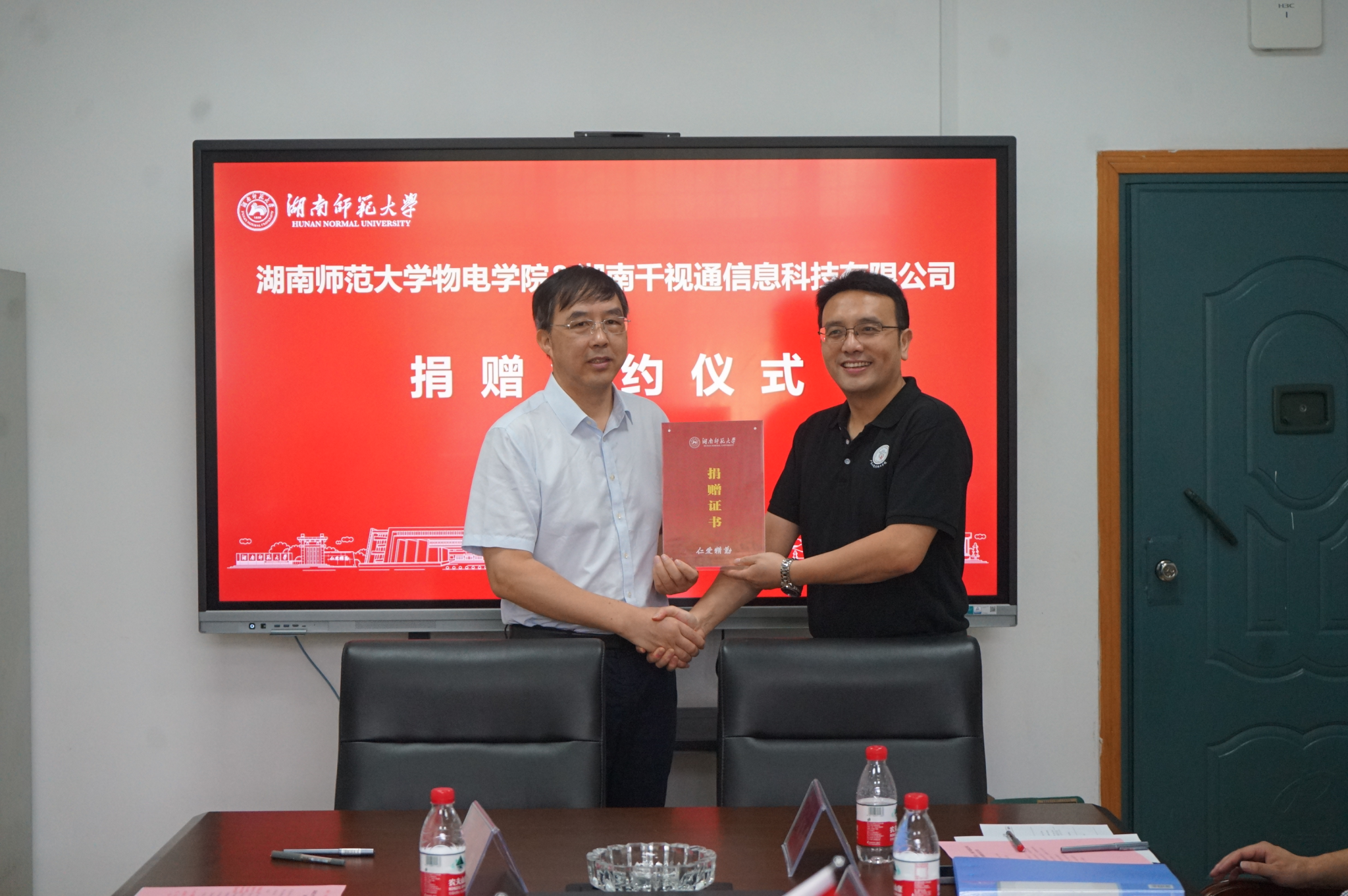 近日,湖南千视通信息科技有限公司捐赠签约仪式在公司格物楼316会议室举行。公司1988级优秀员工、苏州千视通董事长兼CEO李志前,公司党委副书记郭铭伟出席签约仪式。捐赠仪式由公司电子系系主任蒋乐勇主持。