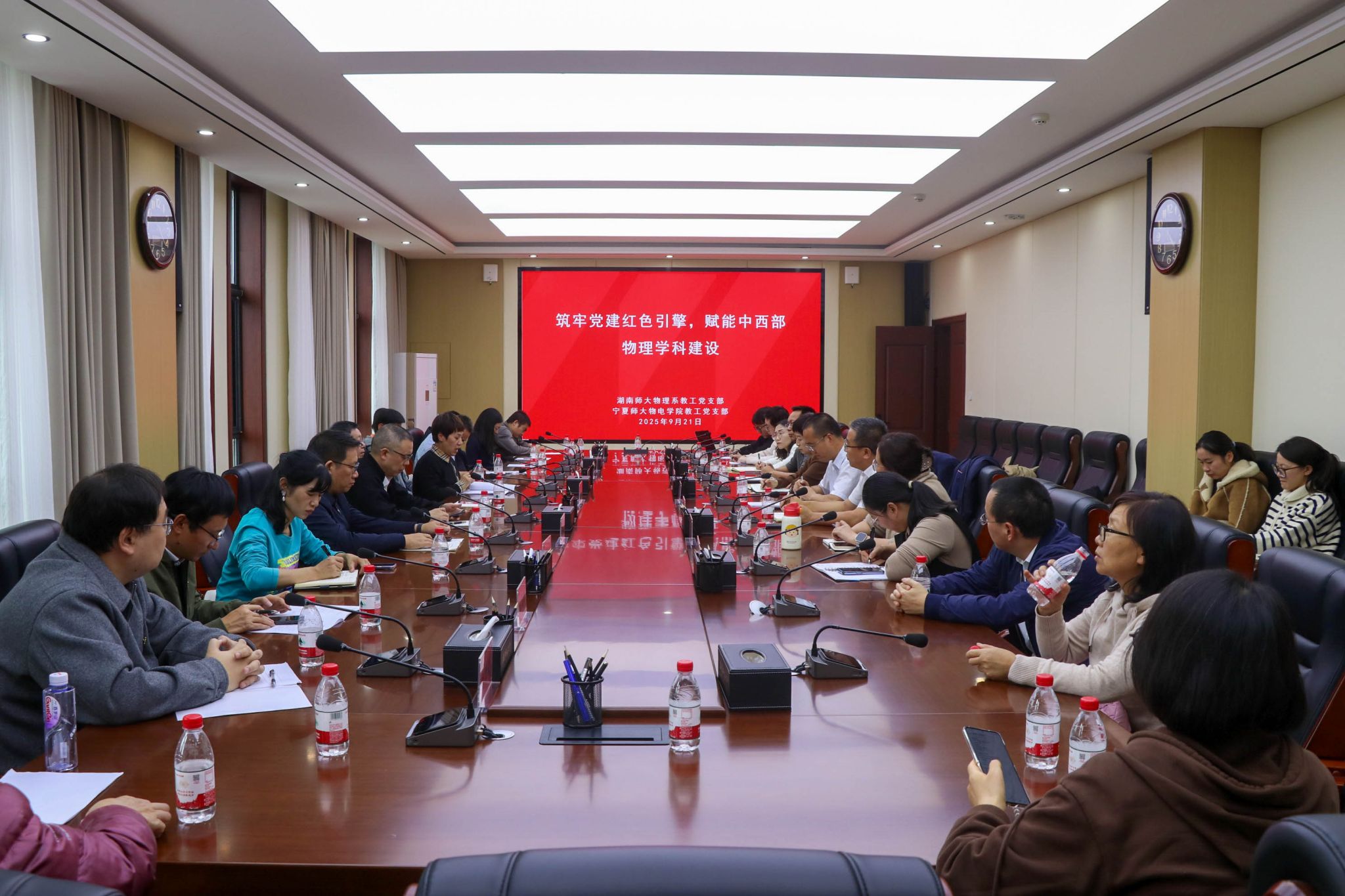 为落实新时代党的建设总要求,2025年9月21日,物理系教工党支部赴宁夏固原,与宁夏师范大学物理与电子信息工程公司教职工党支部开展联学联建活动,通过红色教育与业务交流结合,搭建中西部高校协同发展桥梁。