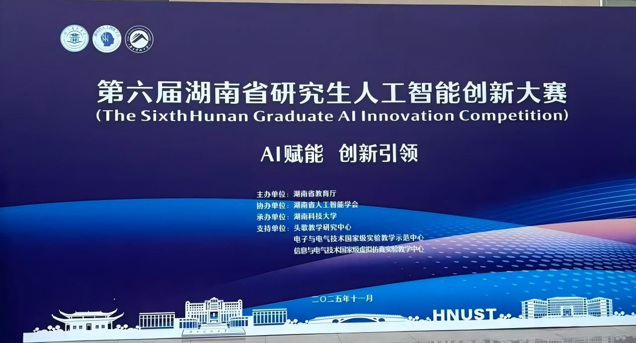 第六届湖南省研究生人工智能创新大赛由湖南省教育厅主办,湖南省人工智能学会协办,湖南科技大学承办。大赛以“AI赋能,创新引领”为主题,分设自主选题类和揭榜挑战类两大赛道,自主选题类聚焦探索AI新领域,创新驱动产业深度应用,促进技术与产业融合发展。揭榜挑战类聚集企业痛点难题,创新AI解决方案,精准应对实际应用挑战。大赛吸引了来自国防科技大学、中南大学、湖南大学等19个培养单位的1000余名博士研究生、硕士研究生参赛。