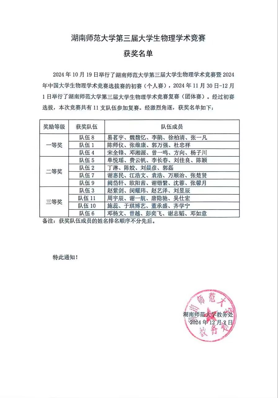 上一条:2024年寒假“物理前沿讲座与体验——拔尖 创新人才培养”(力学基础)培训班通知
